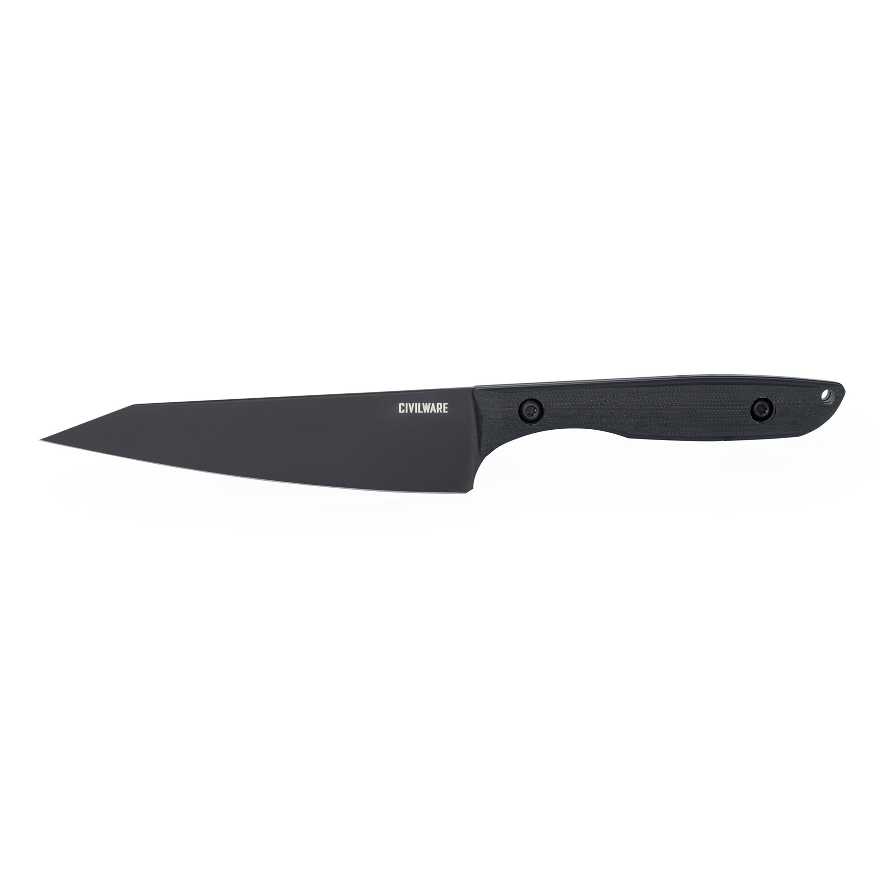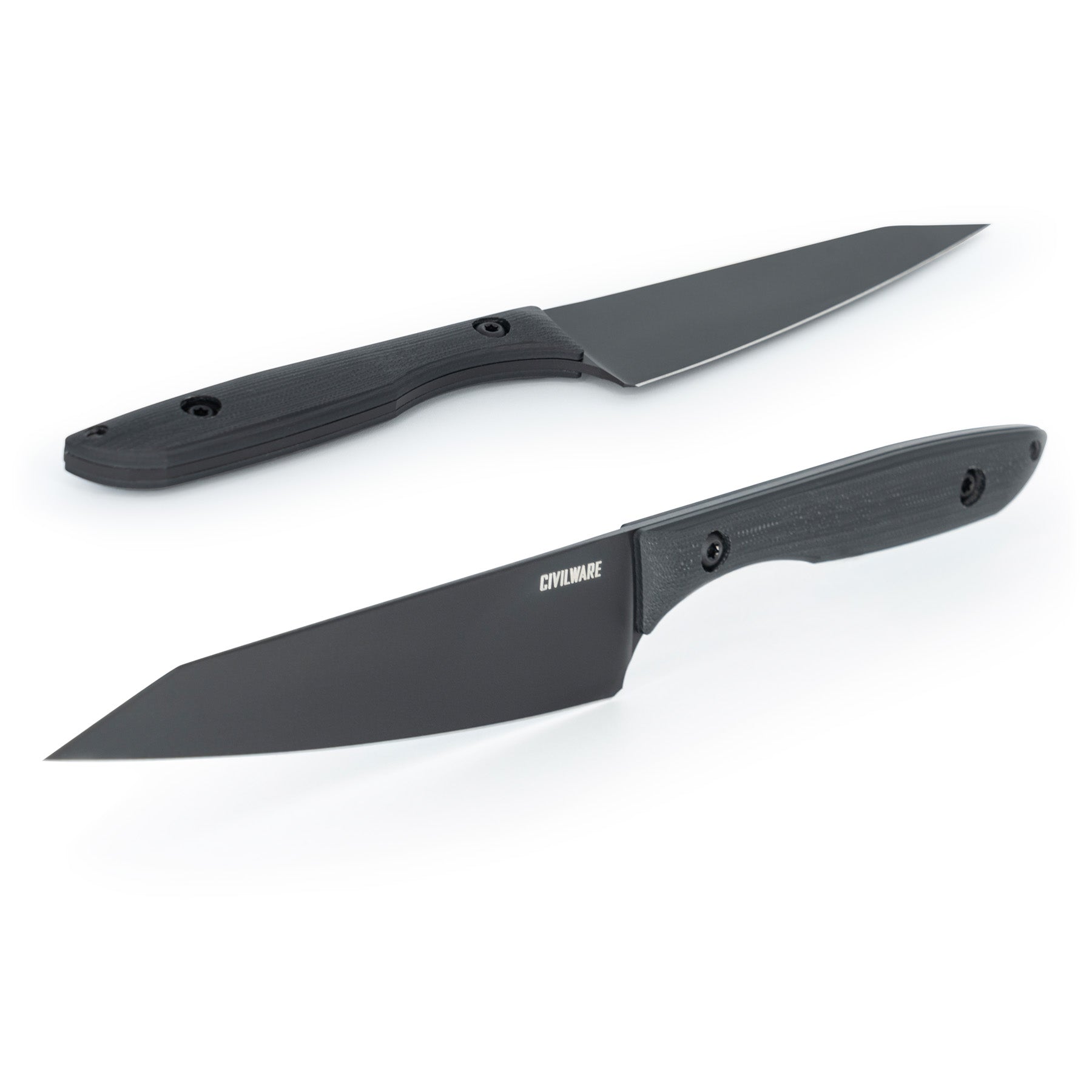 Precision cutting and handling in the home or afield. The CIVILWARE Petty [LTD] is slightly larger than a standard paring knife and designed for a wide range of tasks, such as slicing, dicing, trimming meat, cutting vegetables - The Petty [LTD] balances the control of a paring knife with greater versatility of a larger chef's knife . A great everyday carry choice for kitchen, camp, or bbq - this knife can handle it all. We chose Magnacut blade steel for its toughness, edge retention, corrosion resistance, along with its superior cutting power. Comes standard with a black Kydex sheath. Built to an uncompromising standard.