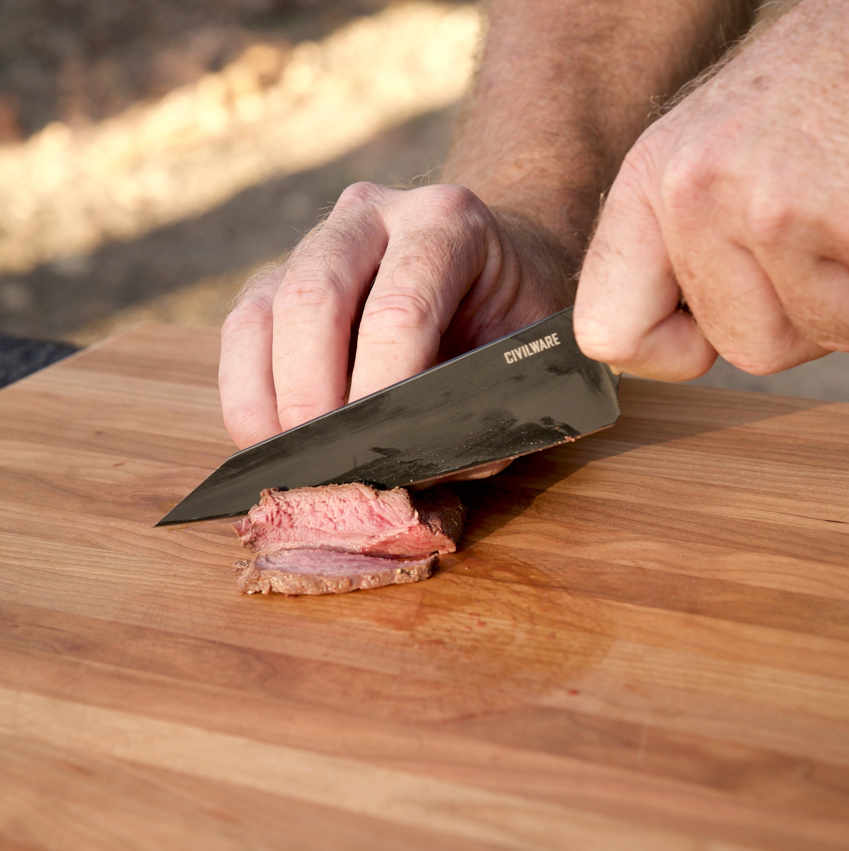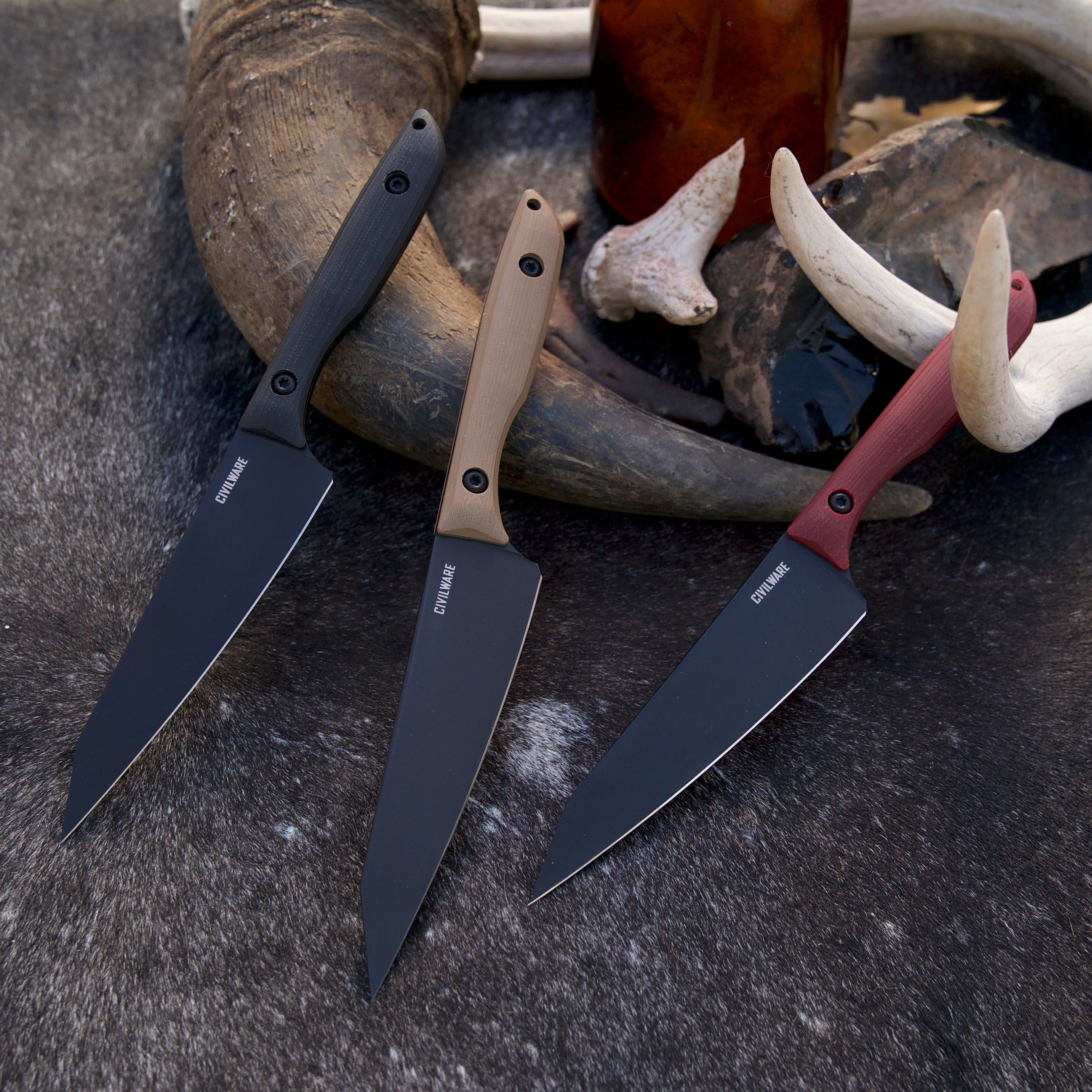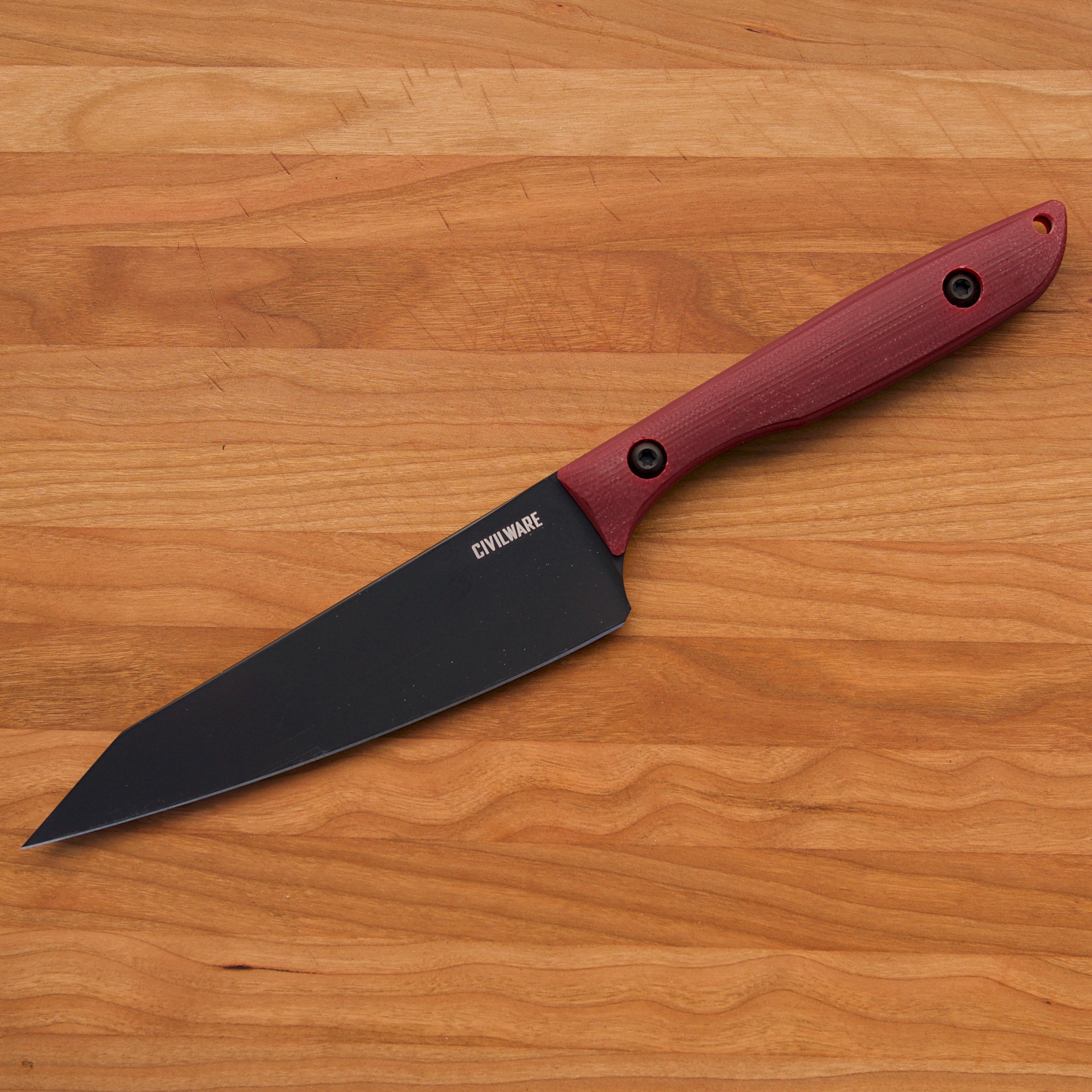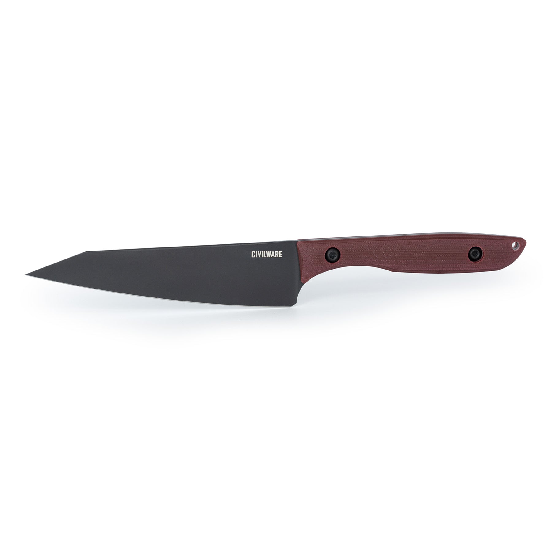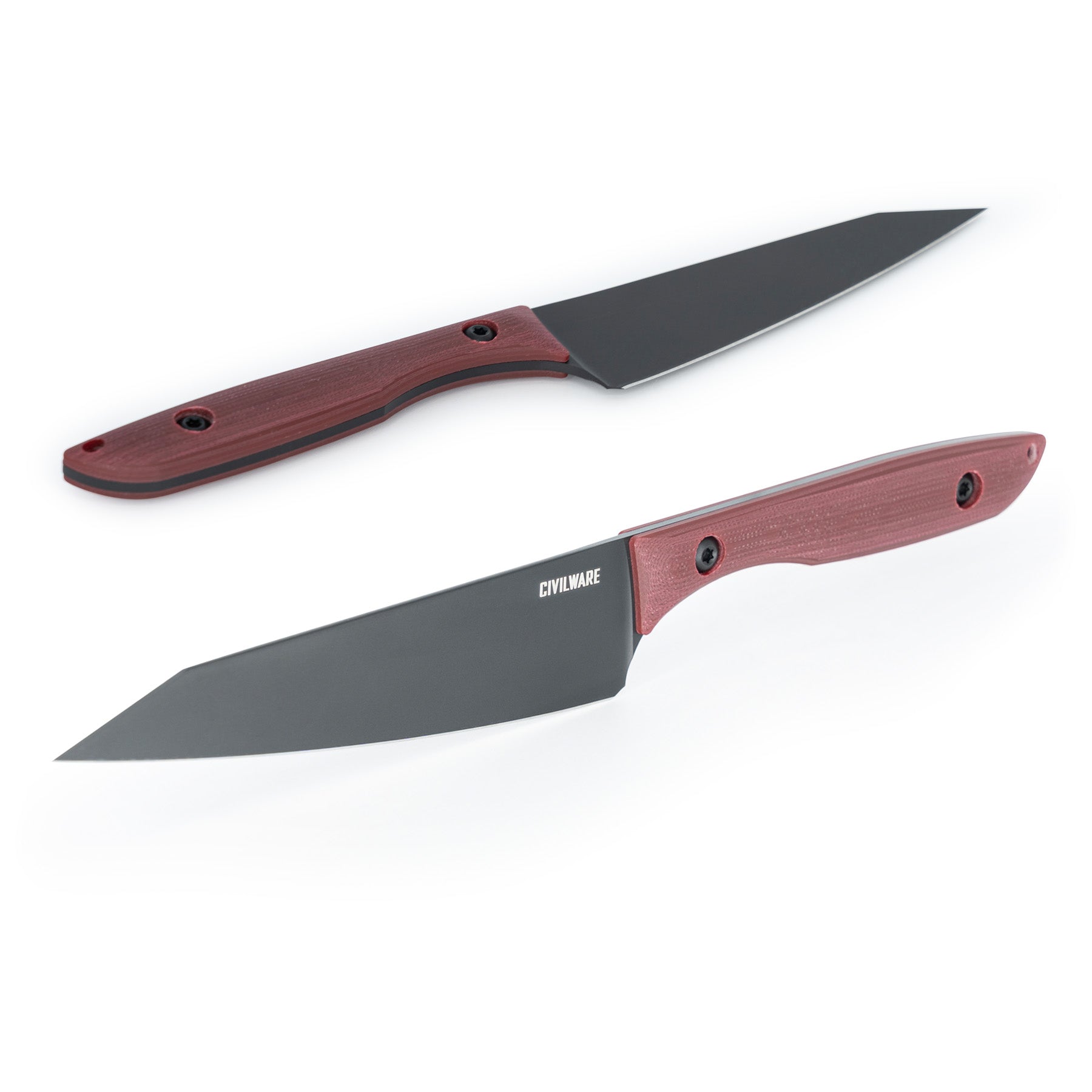 Precision cutting and handling in the home or afield. The CIVILWARE Petty [LTD] is slightly larger than a standard paring knife and designed for a wide range of tasks, such as slicing, dicing, trimming meat, cutting vegetables - The Petty [LTD] balances the control of a paring knife with greater versatility of a larger chef's knife . A great everyday carry choice for kitchen, camp, or bbq - this knife can handle it all. We chose Magnacut blade steel for its toughness, edge retention, corrosion resistance, along with its superior cutting power. Comes standard with a black Kydex sheath. Built to an uncompromising standard.