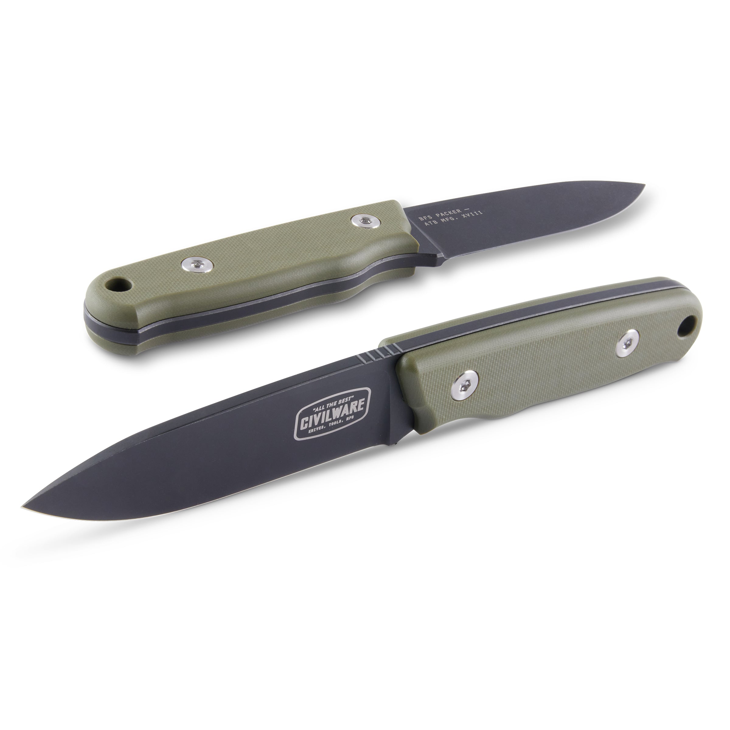 Design inspired by traditional fieldcraft knives from a by-gone era. The CIVILWARE Packer is the go anywhere, do everything fixed blade that can be packed or configured to suit a variety of outdoor/indoor needs and applications. A classic drop point blade shape with contoured handle and kydex sheath.