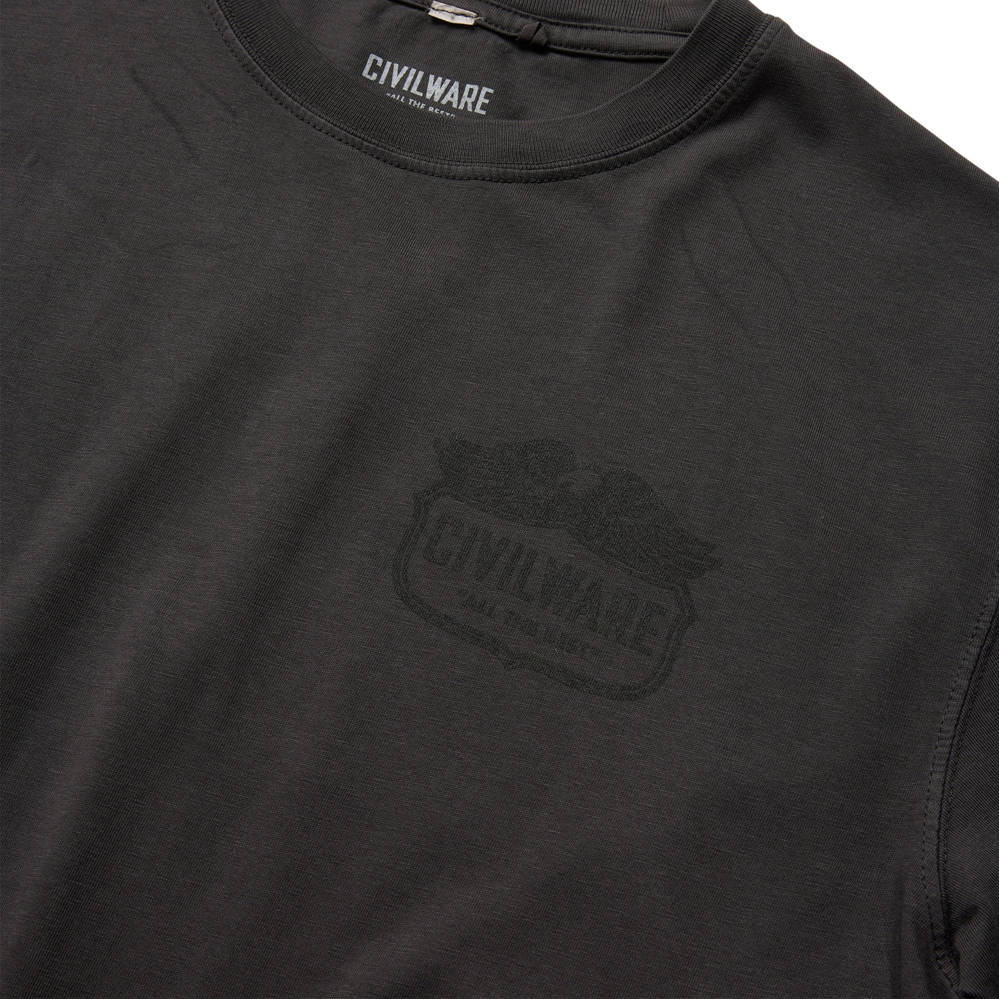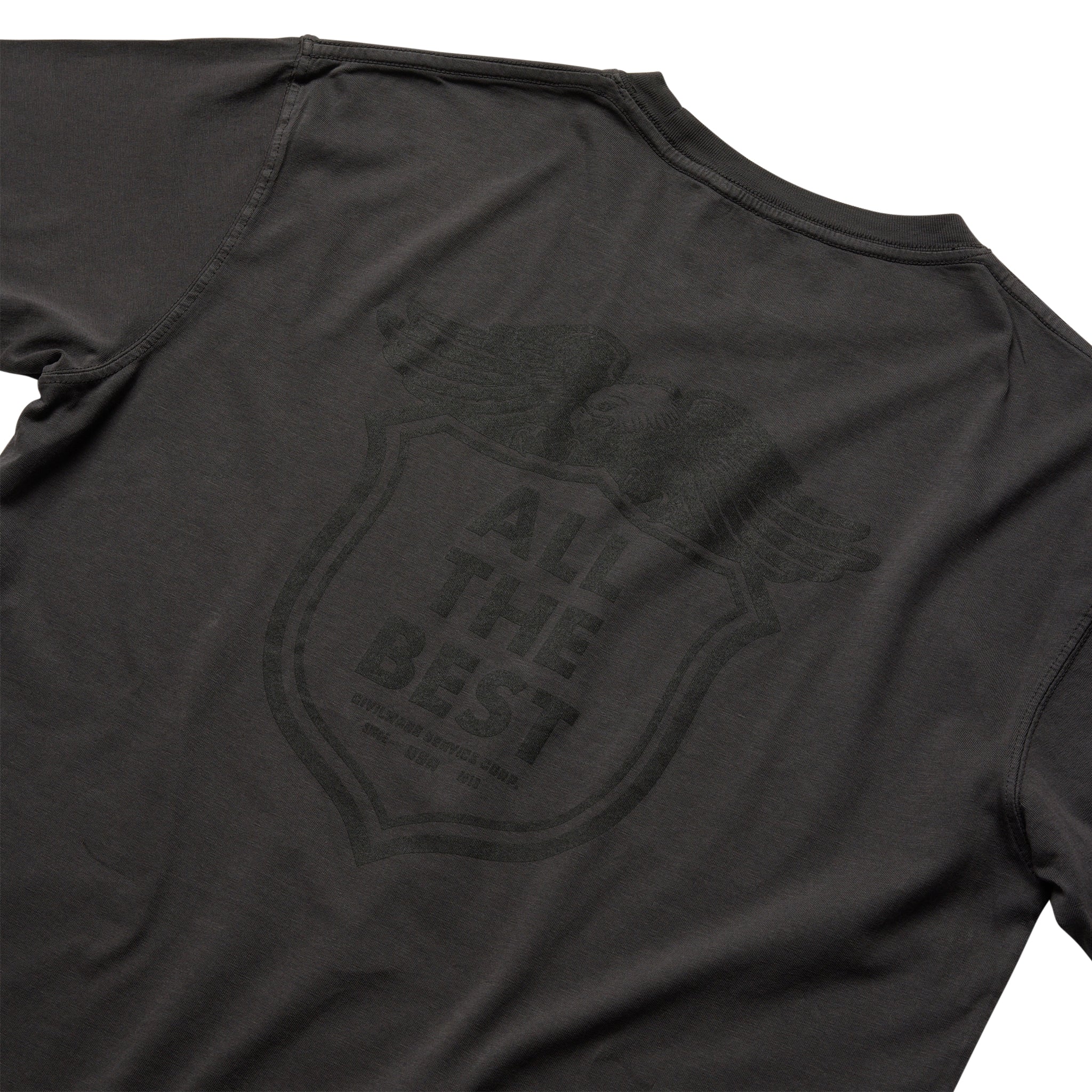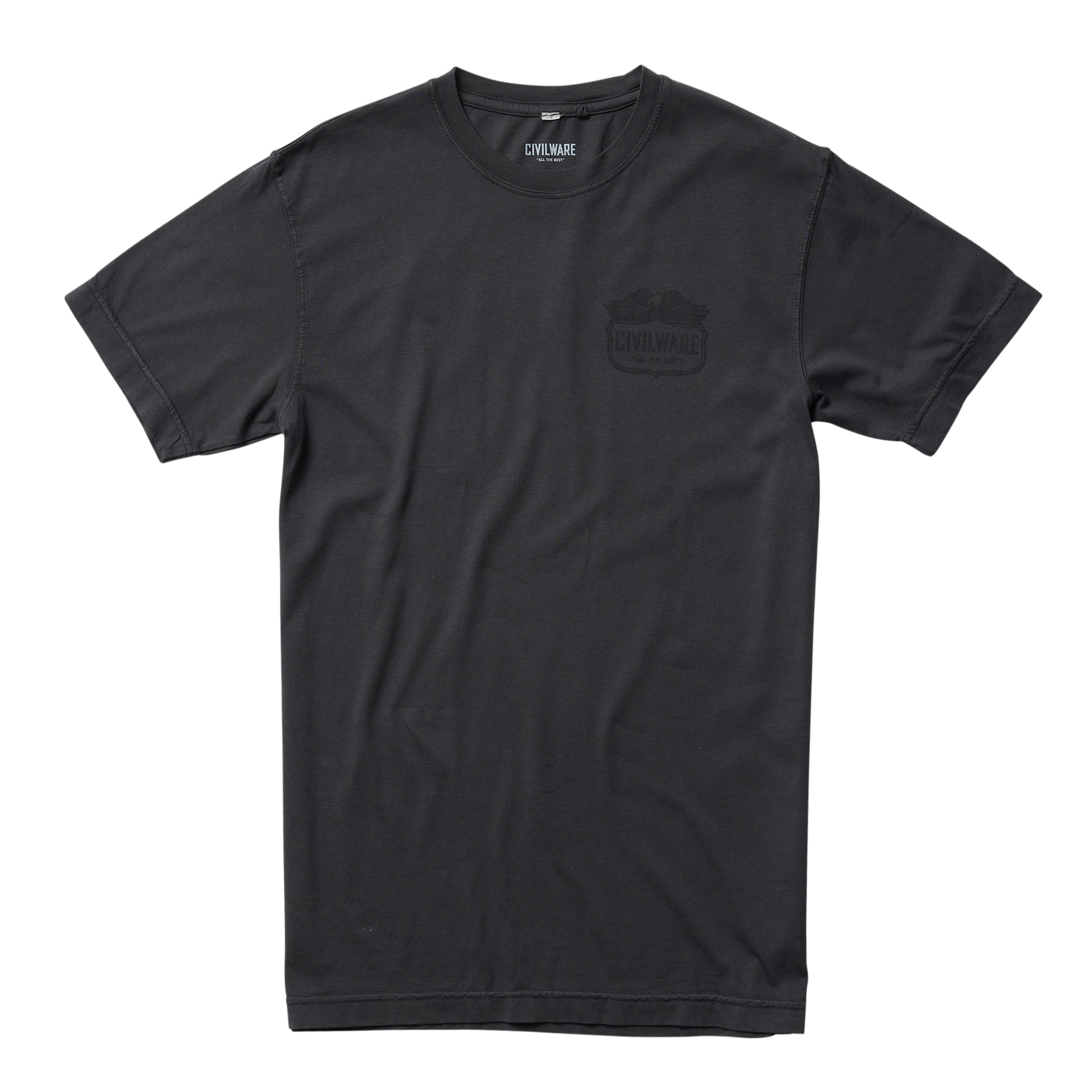 "All The Best" Our commitment to deliver the highest standard of product. A mark of quality and gratitude. This 100% cotton T-Shirt with "Civilware" front print and "All The Best" shield back print is a Garment dyed, soft hand feel mid weight shirt with a relaxed fit, that feels broken in from day one. It is our standard Civilware high quality down to the last detail.