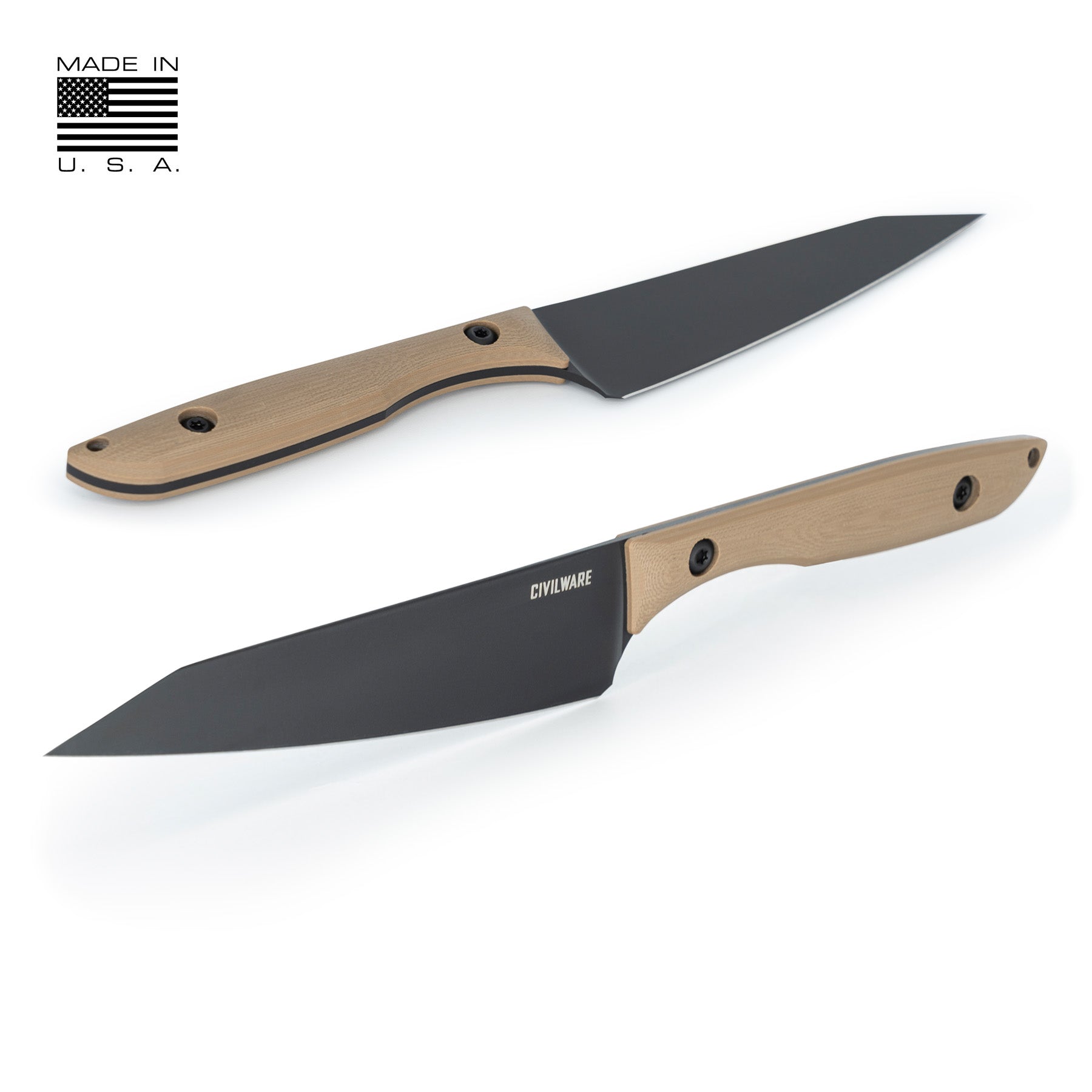 Precision cutting and handling in the home or afield. The CIVILWARE Petty [LTD] is slightly larger than a standard paring knife and designed for a wide range of tasks, such as slicing, dicing, trimming meat, cutting vegetables - The Petty [LTD] balances the control of a paring knife with greater versatility of a larger chef's knife . A great everyday carry choice for kitchen, camp, or bbq - this knife can handle it all. We chose Magnacut blade steel for its toughness, edge retention, corrosion resistance, along with its superior cutting power. Comes standard with a black Kydex sheath. Built to an uncompromising standard.